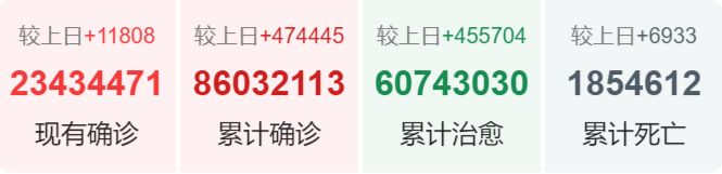 | 美国 | 21,353,051 | 190,165 | 362,123 |