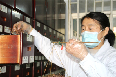 张红霞正在调配中药。 张磊/摄