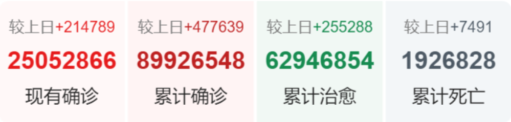 | 美国 | 22,699,938 | 249,519 | 381,480 |