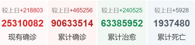 | 美国 | 22,917,334 | 213,453 | 383,275 |