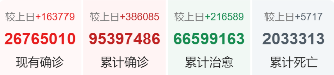 | 美国 | 24,482,050 | 174,560 | 407,202 |