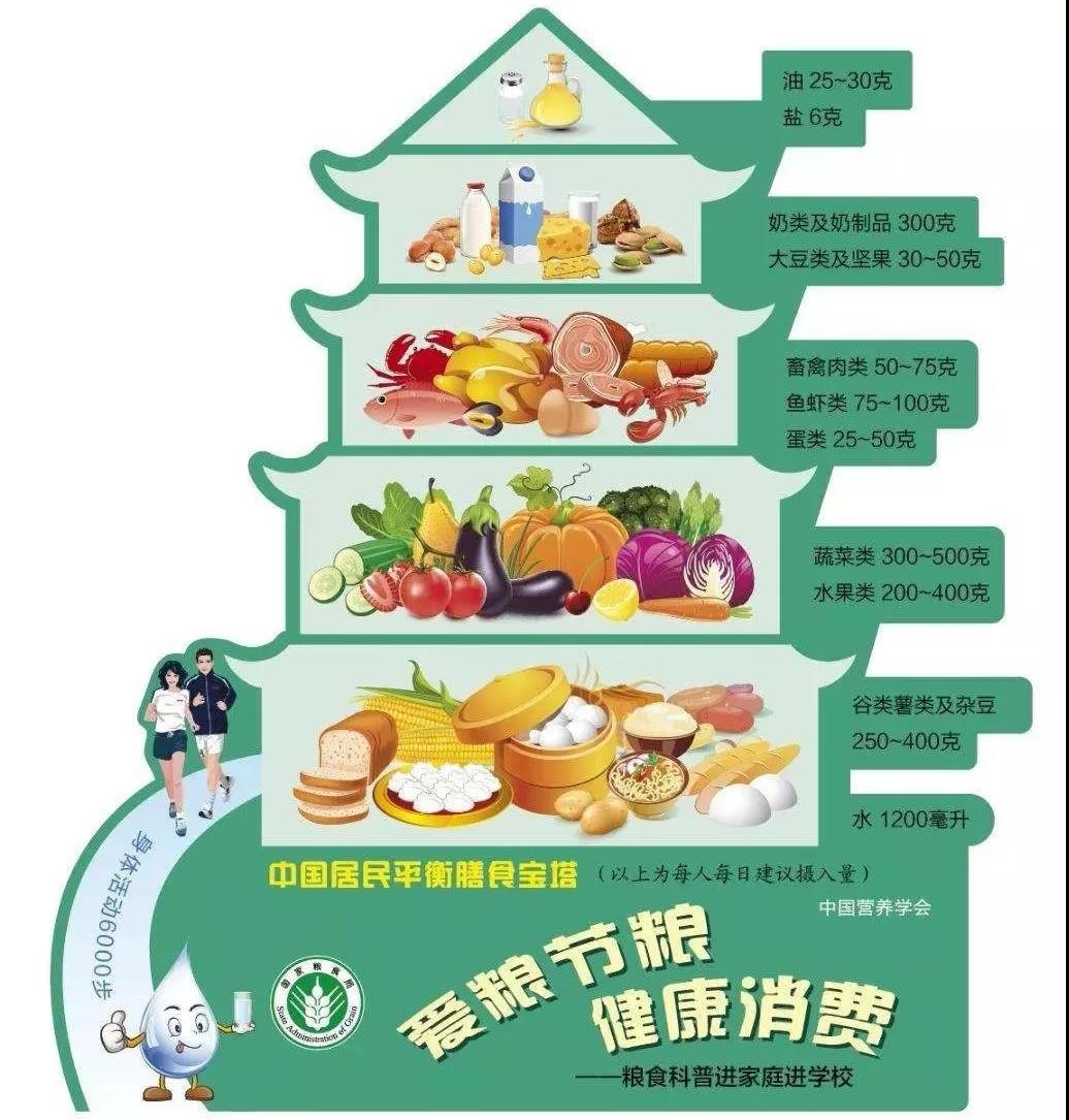 我们可以参照中国营养学会最新版的中国居民平衡膳食宝塔。