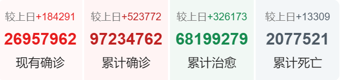 | 美国 | 24,998,975 | 188,426 | 415,894 |