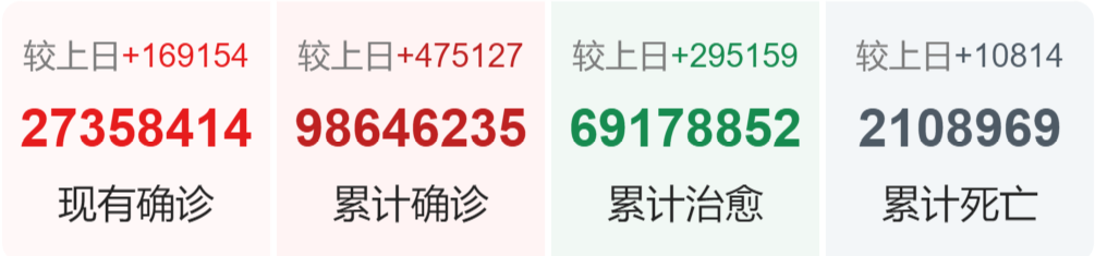 美国疾病控制和预防中心网站21日的疫情数据显示,全美累计新冠确诊病例超过2432万例,单日新增超过18.8万例;过去7天,每10万人中每天平均新增58.4人感染。截至21日,全美累计新冠死亡病例超过40.4万例,单日新增4383例。