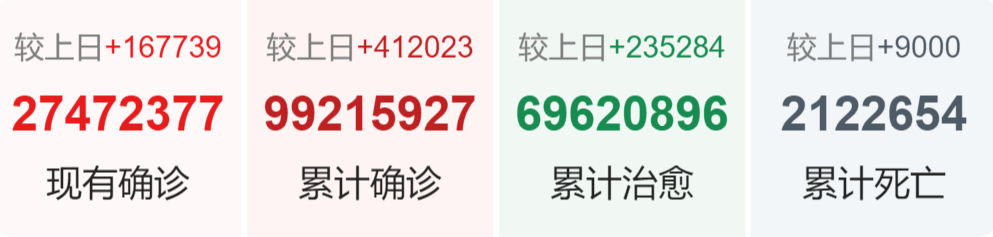 | 美国 | 25,566,789 | 172,913 | 427,635 |