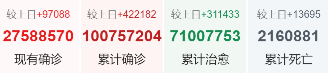 | 美国 | 26,011,222 | 148,265 | 435,452 |