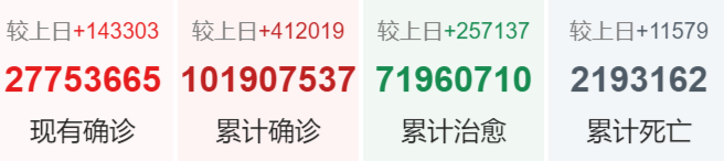 | 美国 | 26,338,607 | 162,574 | 443,769 |