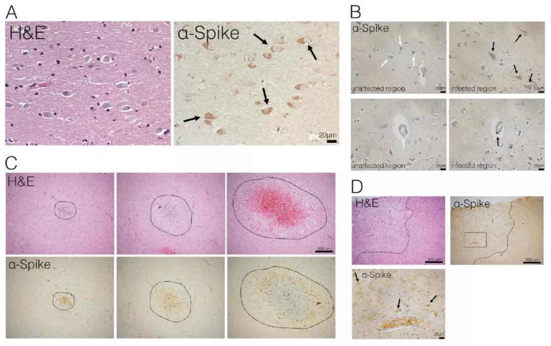 图3:死亡病人大脑中可检测到新冠病毒蛋白