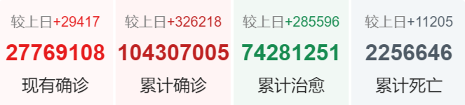 | 美国 | 27,027,347 | 114,703 | 457,856 |