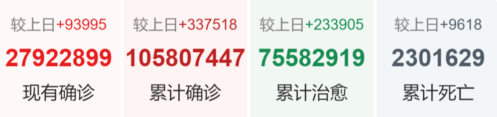 | 国家/地区 | 确诊总数 | 新增确诊 | 死亡总数 |
