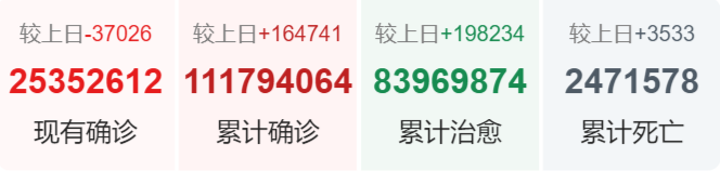 | 国家/地区 | 确诊总数 | 新增确诊 | 死亡总数 |