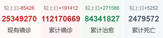 | 国家/地区 | 确诊总数 | 新增确诊 | 死亡总数 |