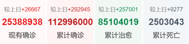 | 国家/地区 | 确诊总数 | 新增确诊 | 死亡总数 |