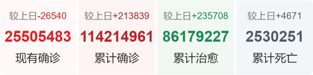 | 国家/地区 | 确诊总数 | 新增确诊 | 死亡总数 |