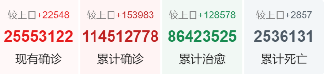 | 美国 | 29,255,344 | 49,412 | 525,776 |