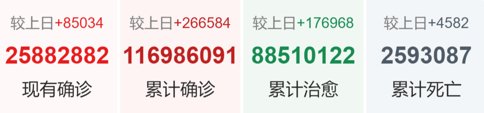 | 美国 | 29,653,891 | 58,228 | 537,119 |