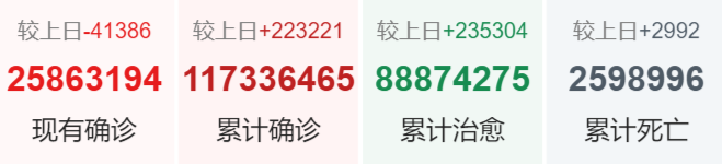 | 美国 | 29,696,250 | 41,967 | 537,838 |