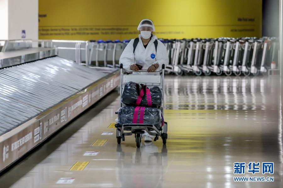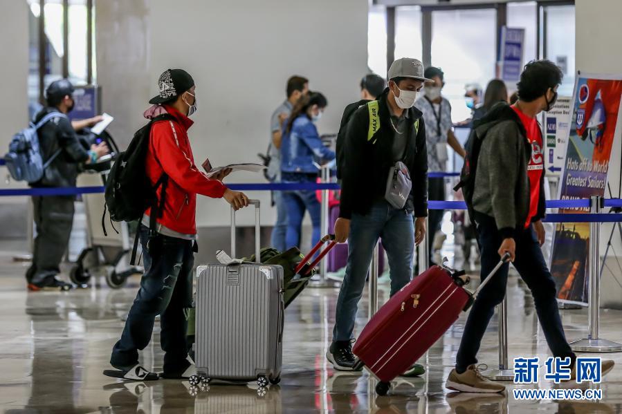 3月17日,戴口罩的乘客带着行李走在菲律宾马尼拉国际机场。 菲律宾政府16日晚宣布,为遏制疫情反弹,菲律宾将暂时禁止外国公民和部分海外菲律宾人入境。此禁令本月20日起生效,为期一个月。 新华社发(乌马利摄)