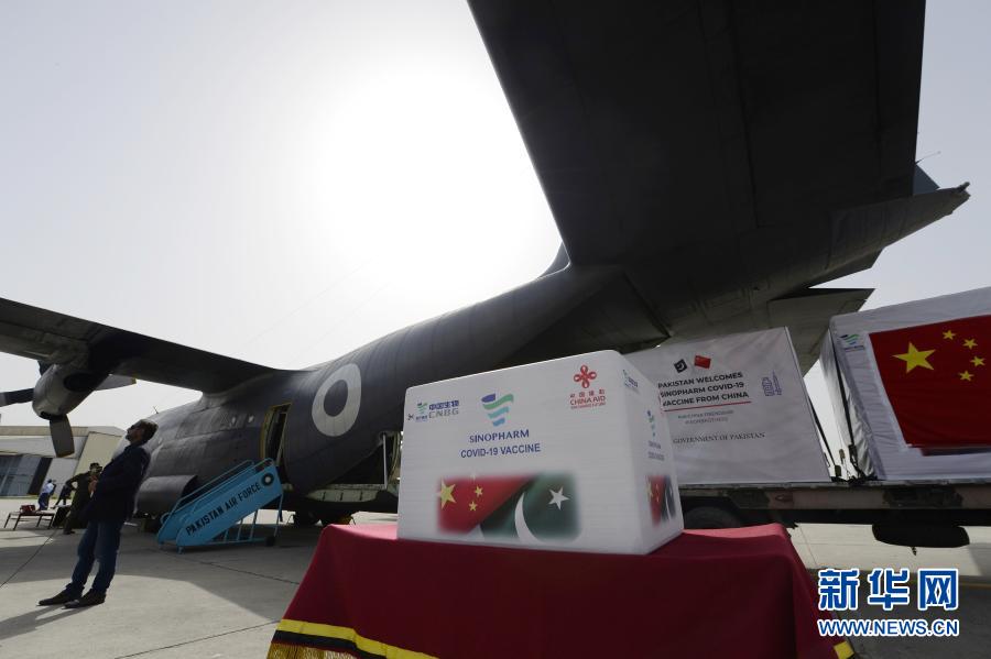 3月17日,中国政府援助巴基斯坦第二批新冠疫苗交接仪式在巴首都伊斯兰堡附近的努尔汗空军基地举行。巴基斯坦是中国政府对外援助新冠疫苗的第一个受援国,巴基斯坦军队也是第一个接受中国军队新冠疫苗援助的外国军队。新华社发(艾哈迈德·卡迈勒摄)