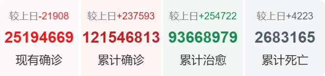 | 国家/地区 | 确诊总数 | 新增确诊 | 死亡总数 |