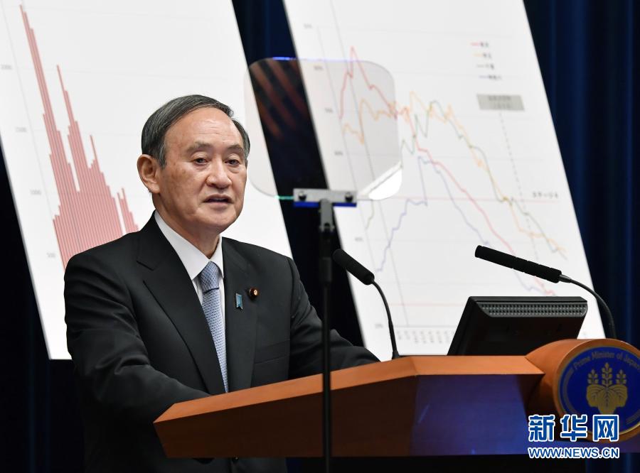 3月18日,日本首相菅义伟在东京首相官邸的记者会上发言。 日本首相菅义伟18日宣布,东京都及其周边的埼玉县、千叶县和神奈川县的紧急状态将于21日到期后解除。 新华社/共同社