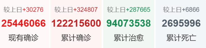 | 美国 | 30,358,880 | 62,629 | 552,470 |