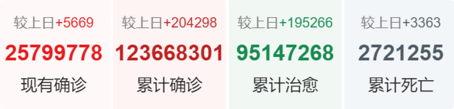| 美国 | 30,521,765 | 39,496 | 555,314 |