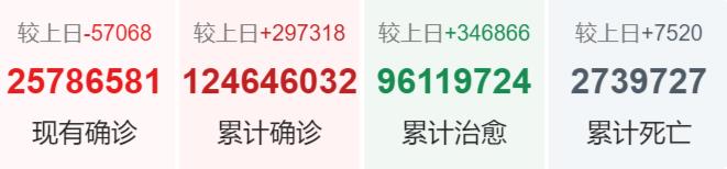 | 国家/地区 | 确诊总数 | 新增确诊 | 死亡总数 |