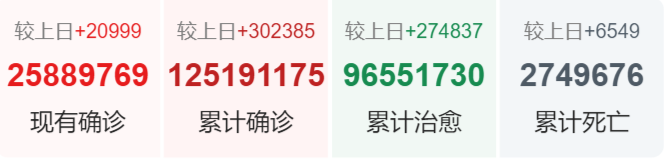 | 美国 | 30,704,292 | 66,538 | 558,422 |