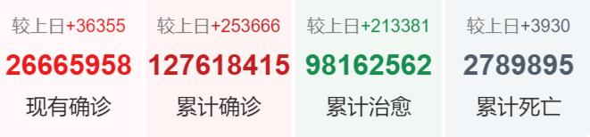 | 美国 | 30,962,803 | 44,096 | 562,526 |