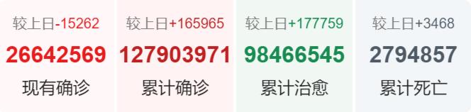 | 国家/地区 | 确诊总数 | 新增确诊 | 死亡总数 |