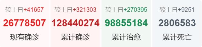 | 美国 | 31,097,154 | 62,459 | 564,138 |