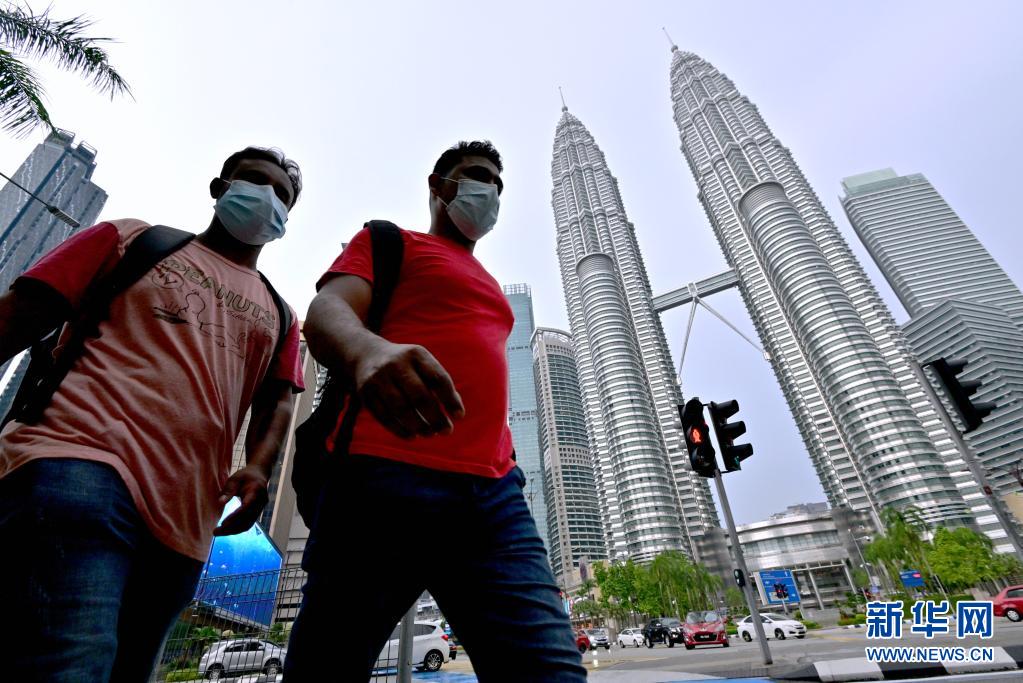 5月19日,在马来西亚吉隆坡,行人戴着口罩走在路上。