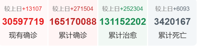 | 美国 | 33,802,324 | 28,541 | 601,949 |