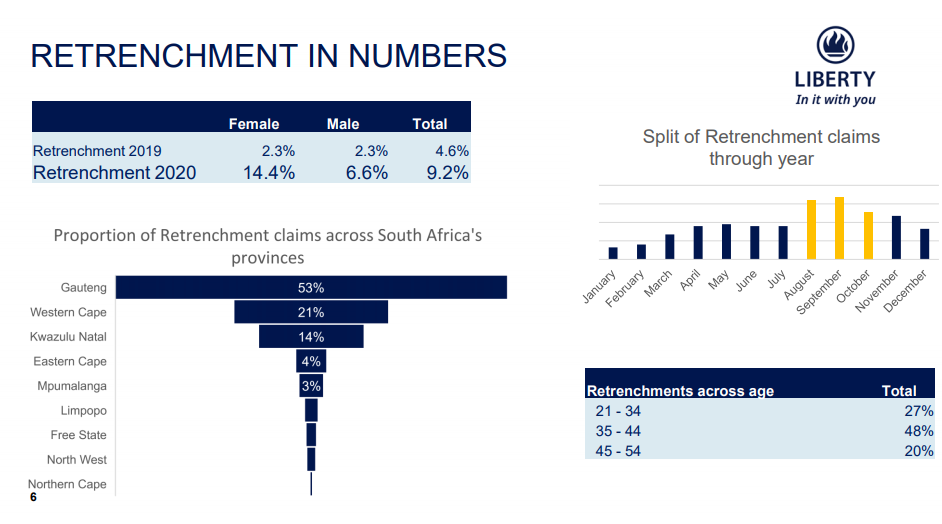 南非第一大城市约翰内斯堡、第二大城市开普敦、第三大城市德班及其所在的豪登省、西开普省和夸祖鲁纳塔尔省成为裁员重灾区。35至44岁青年人被裁员最多(48%),女性在裁员中成为主要裁员对象,14.4%的在职女性被裁,6.6%的在职男性离开了工作岗位。