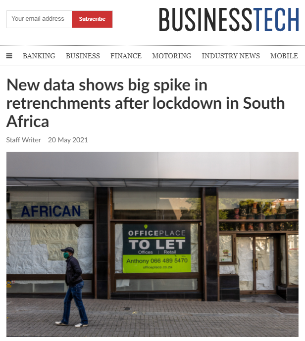 据南非媒体当地时间5月20日报道,据各方数据显示,南非因疫情施行全国居家隔离后,该国爆发裁员潮。