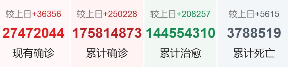 | 国家/地区 | 确诊总数 | 新增确诊 | 死亡总数 |