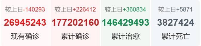 | 巴西 | 17,543,853 | 88,992 | 491,164 |