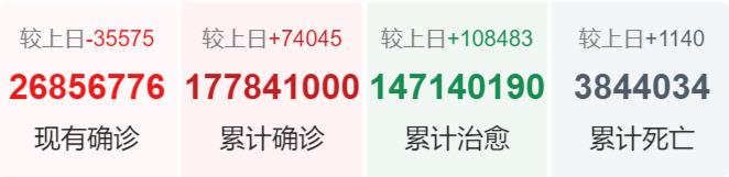 | 巴西 | 17,704,041 | 74,327 | 496,172 |