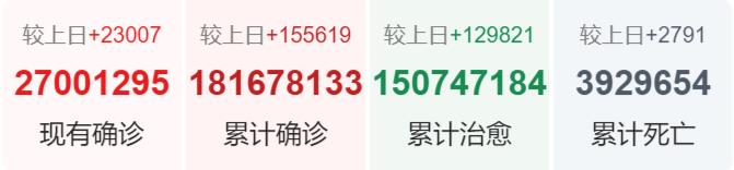 数据显示,截至27日,古巴累计新冠确诊病例达182354例,累计死亡1241例。截至25日,已有2634418人接种了至少一剂古巴自主研发的候选新冠疫苗,约占该国总人口的23%。已接种人群包括临床试验志愿者、医护人员等高风险人群以及首都哈瓦那等疫情高风险地区民众。