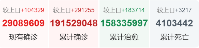 | 国家/地区 | 确诊总数 | 新增确诊 | 死亡总数 |