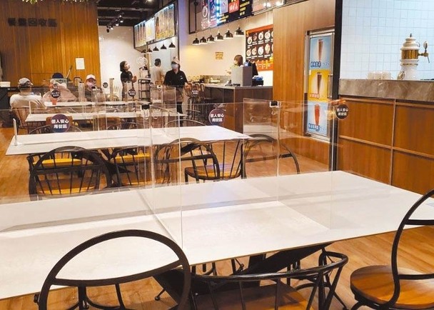 台灣多地開放餐飲堂食,餐桌需用隔板及保持間距。(中時電子報圖片)