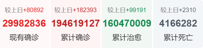 | 巴西 | 19,688,663 | 18,129 | 549,999 |