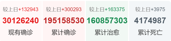 | 西班牙 | 4,342,054 | 20,541 | 81,268 |