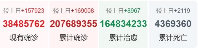 | 国家/地区 | 确诊总数 | 新增确诊 | 死亡总数 |