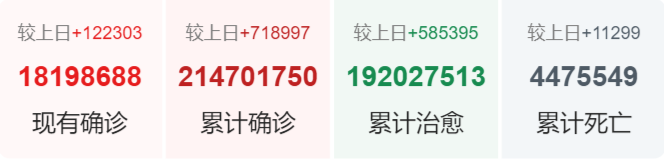 | 美国 | 39,342,153 | 169,953 | 651,956 |