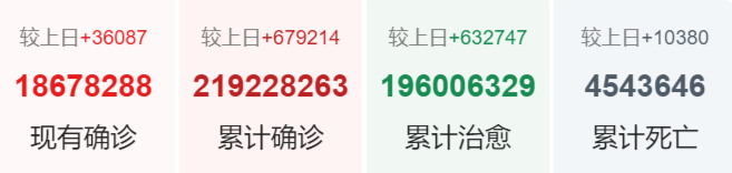 | 美国 | 40,330,712 | 184,420 | 659,927 |