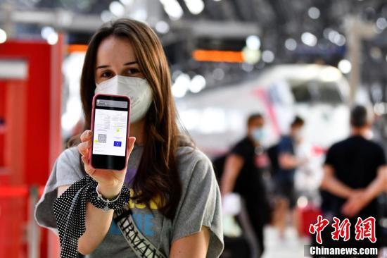 意大利米兰,乘客在火车站出示的健康证明。