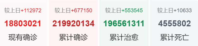 | 美国 | 40,513,018 | 177,568 | 662,853 |