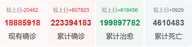 | 美国 | 41,561,156 | 160,748 | 674,547 |